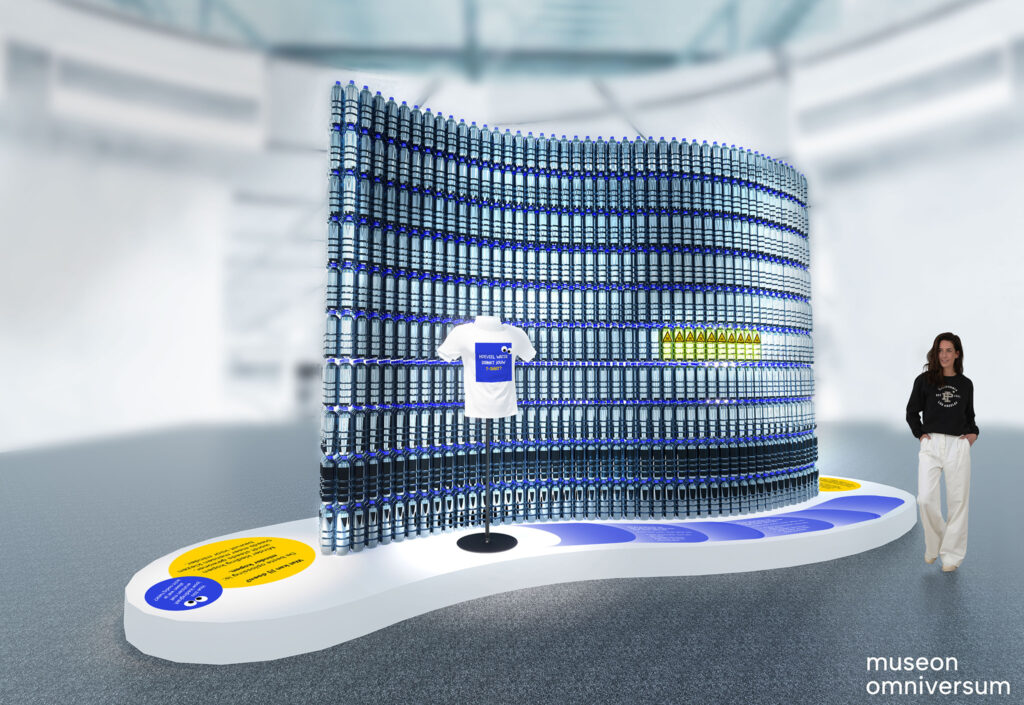 • Zichtbaar maken van milieugevolgen van het eigen gedrag: honderden waterflessen verbeelden de verborgen impact van één katoenen T-shirt.